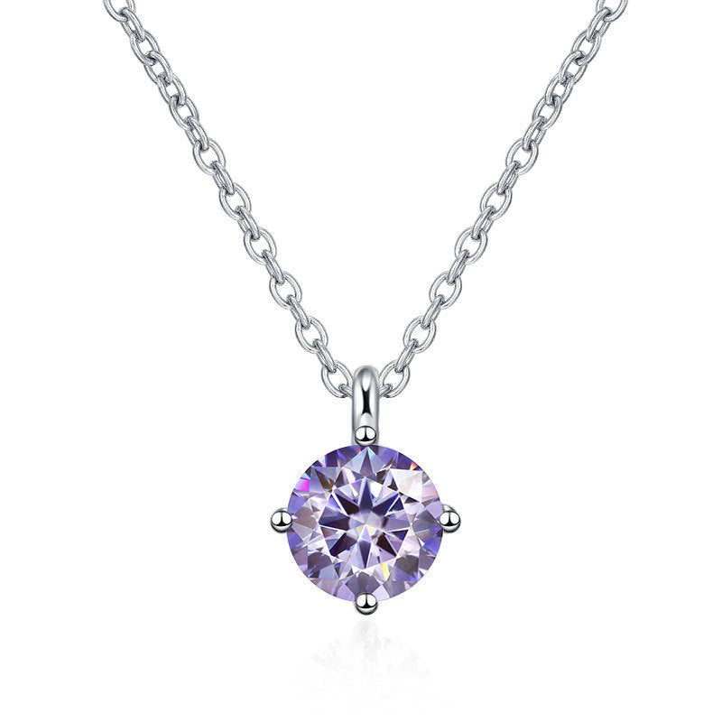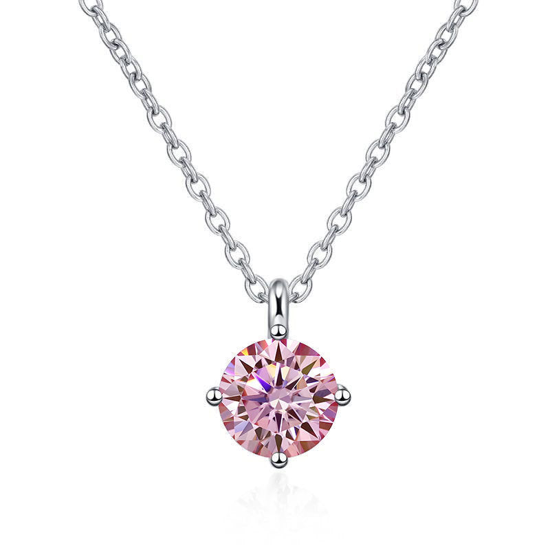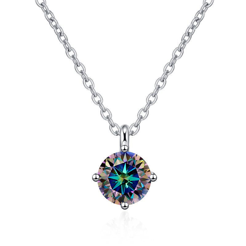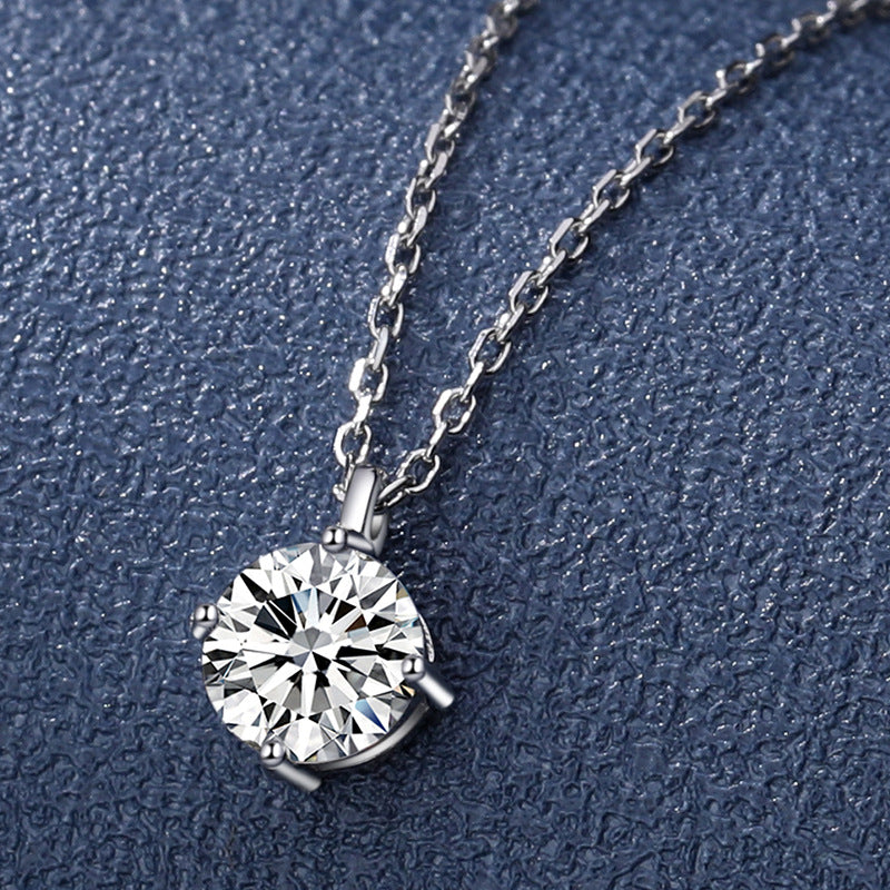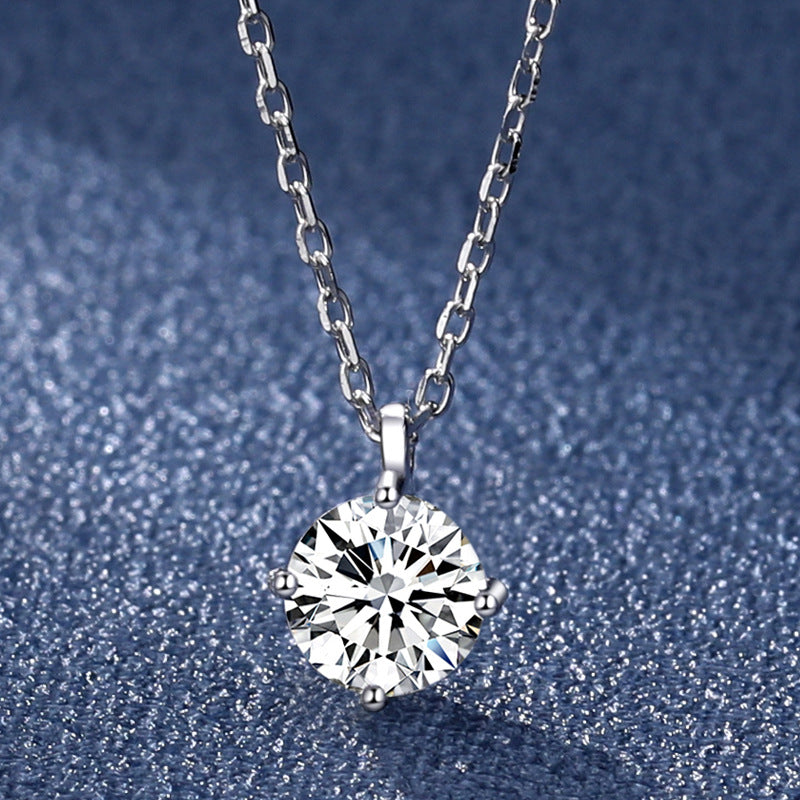 Moissanite pendant, 1 carat D-color diamond studded classic four claw S925 sterling silver necklace for women