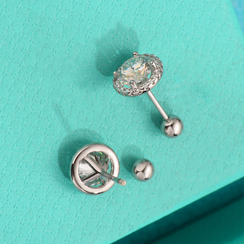 S925 pure silver moissanite earrings with simple temperament, fashionable and niche design, round package full diamond versatile earrings