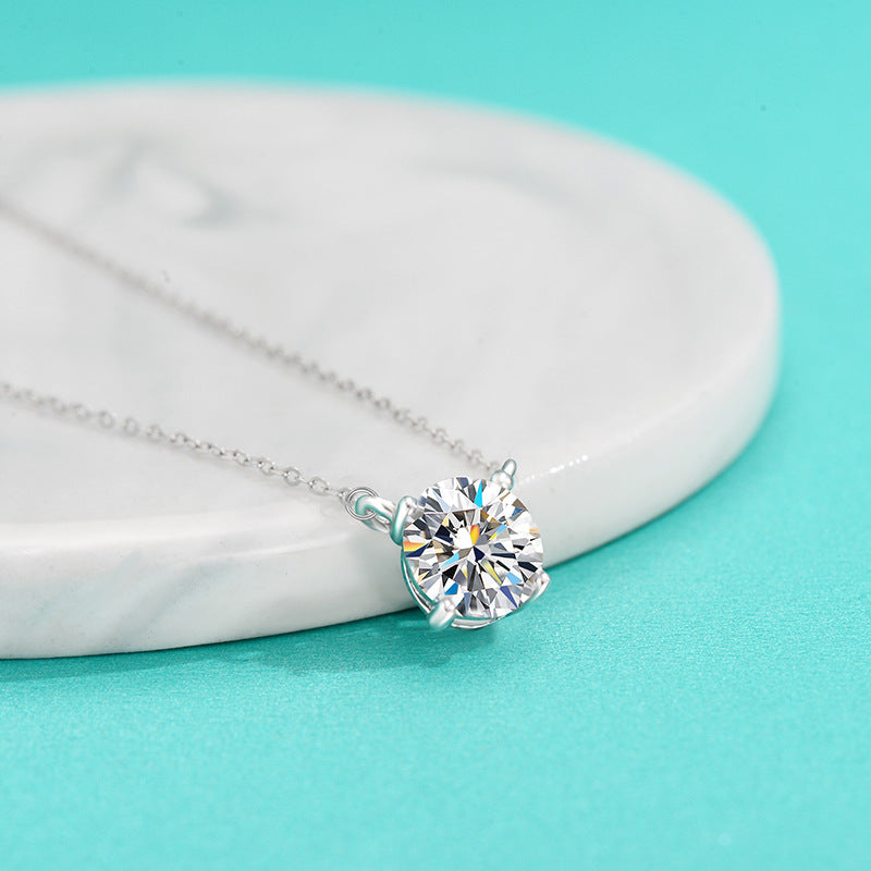 Minimally designed four claw s925 pure silver moissanite necklace, niche design, collarbone chain, light luxury style, single diamond collarbone chain