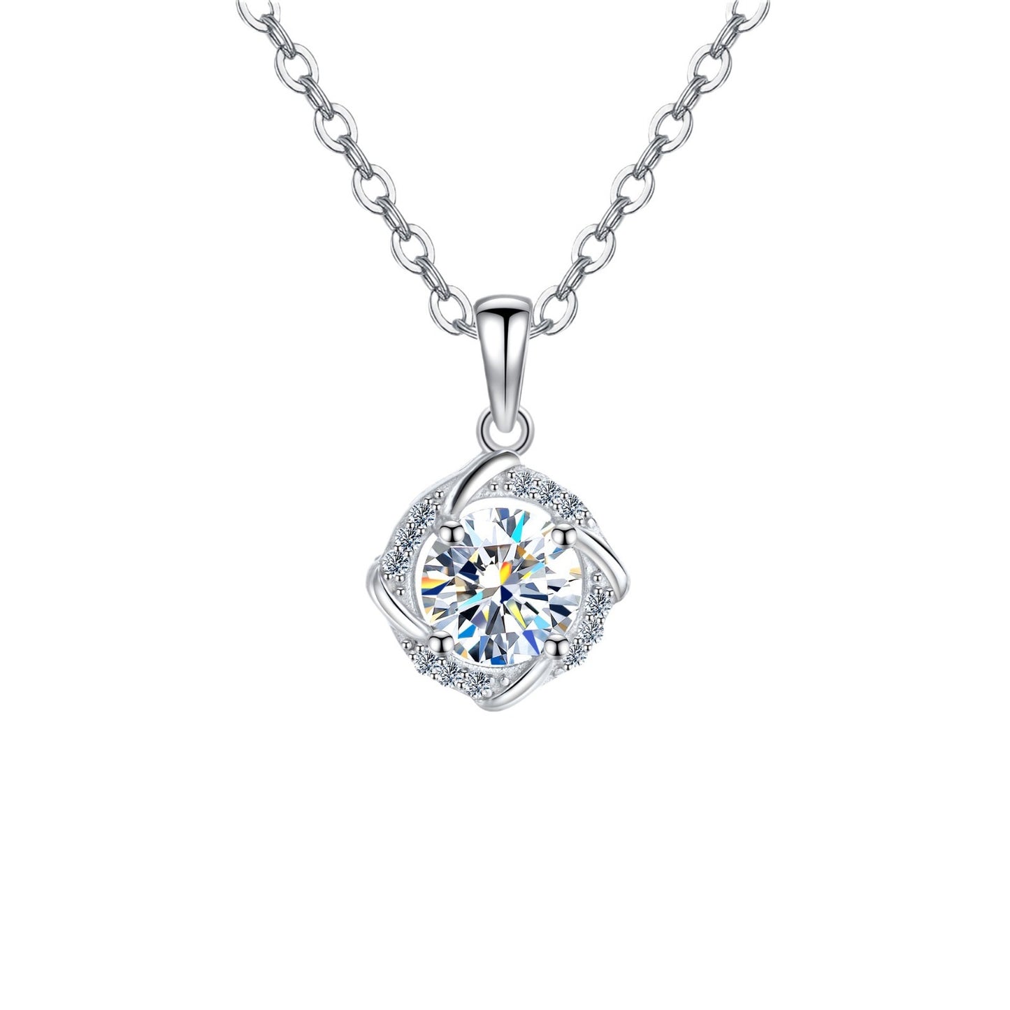 Moissanite Windmill Necklace for Women S925 Pure Silver Clover Pendant, Light Luxury, Simple, Fashionable, and Unique Gift Set