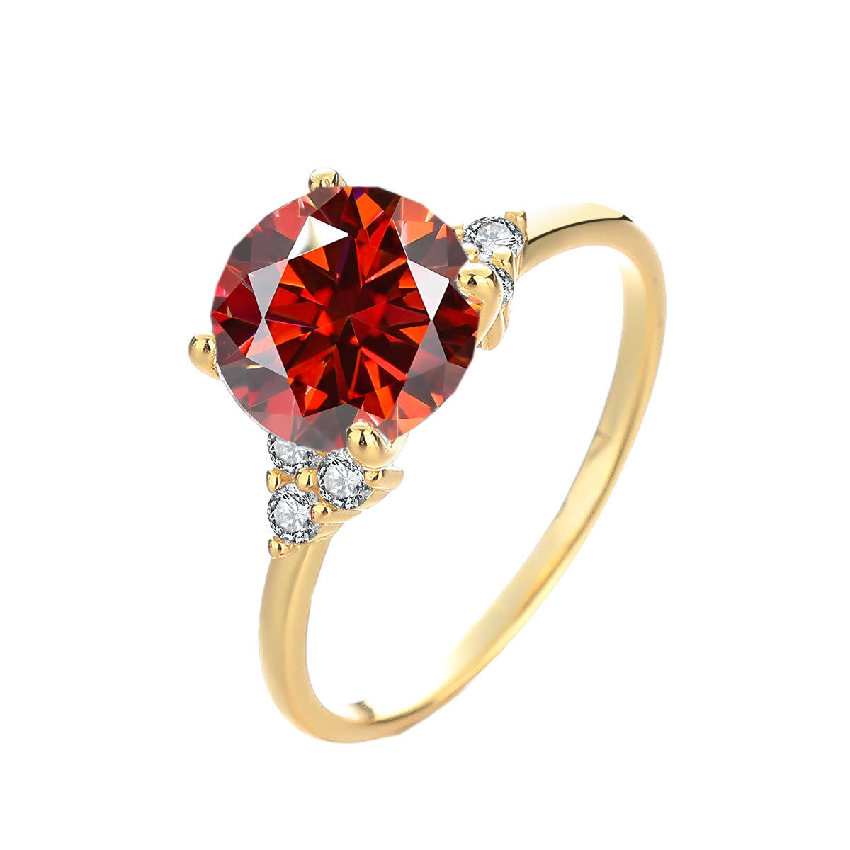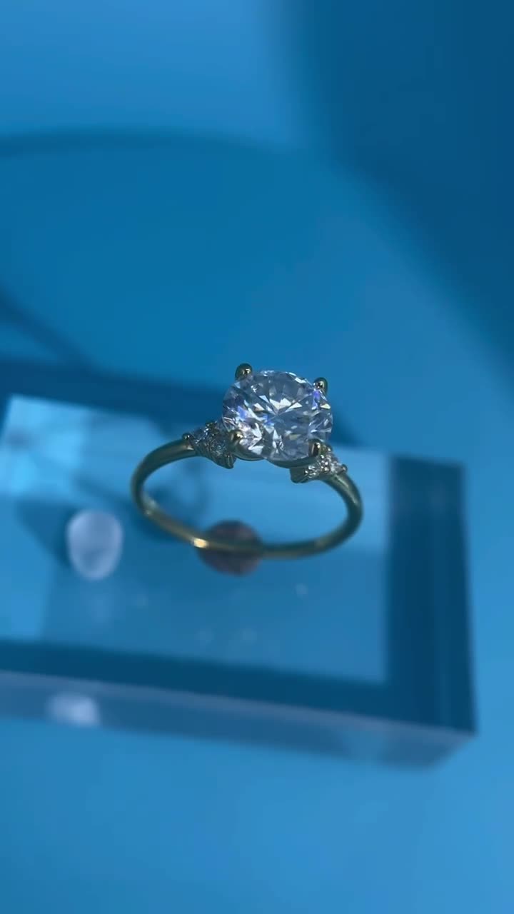 S925 pure silver gold four claw three diamond moissanite ring, luxurious, exquisite and high-end women's ring