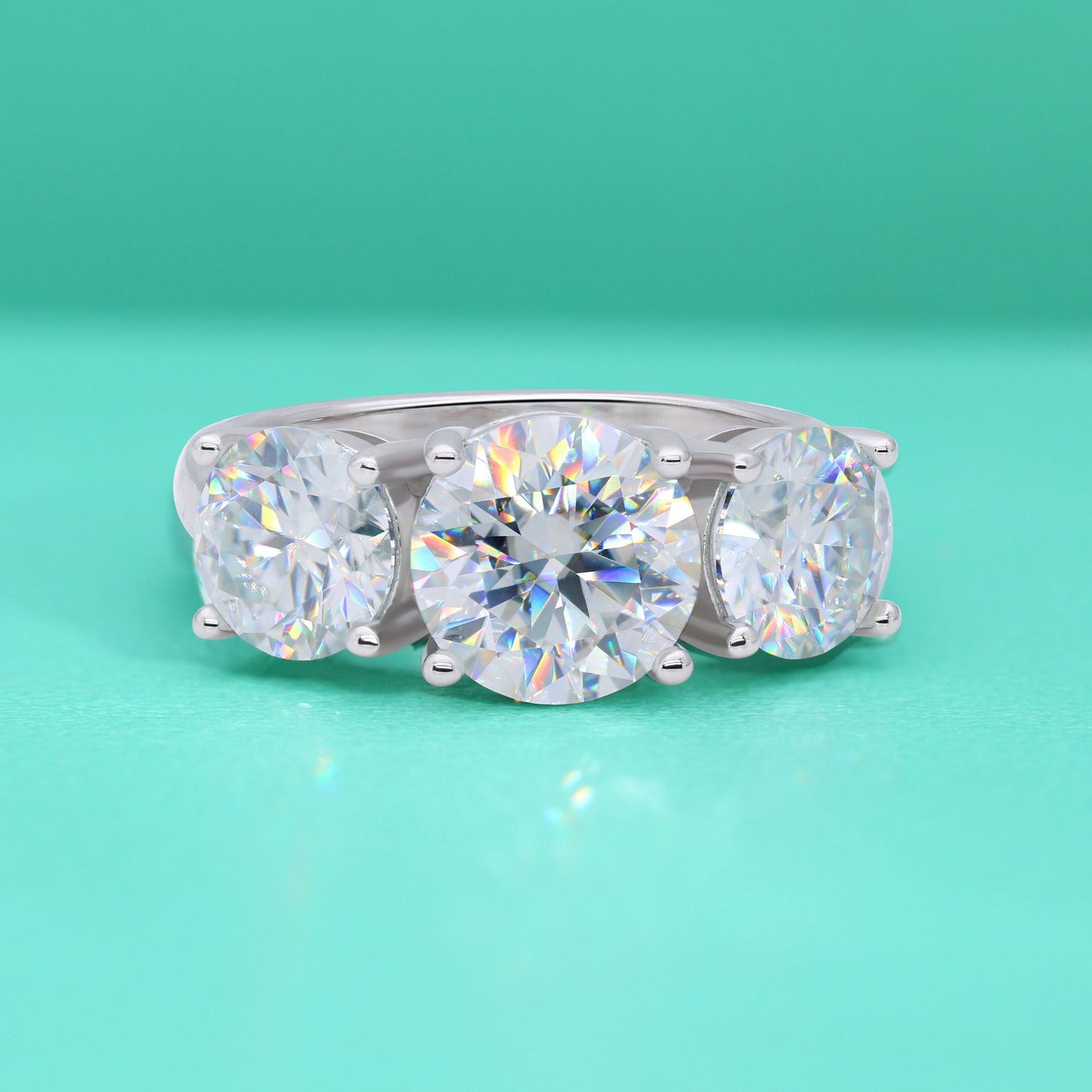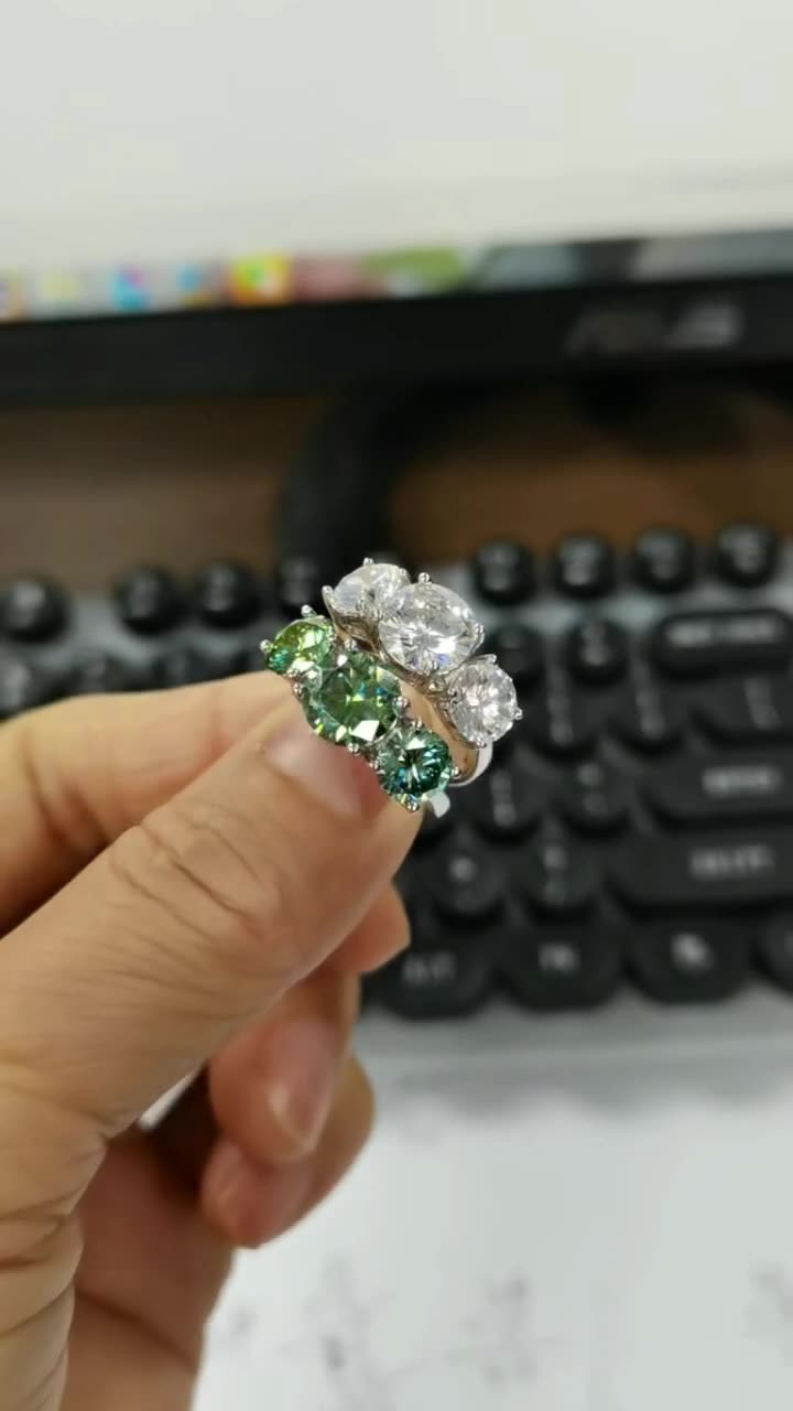 S925 pure silver light luxury atmospheric plated 18k white gold three diamond high-end moissanite diamond women's ring
