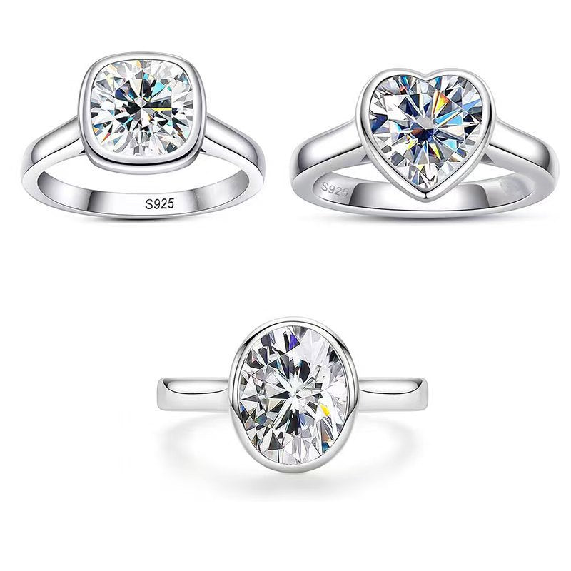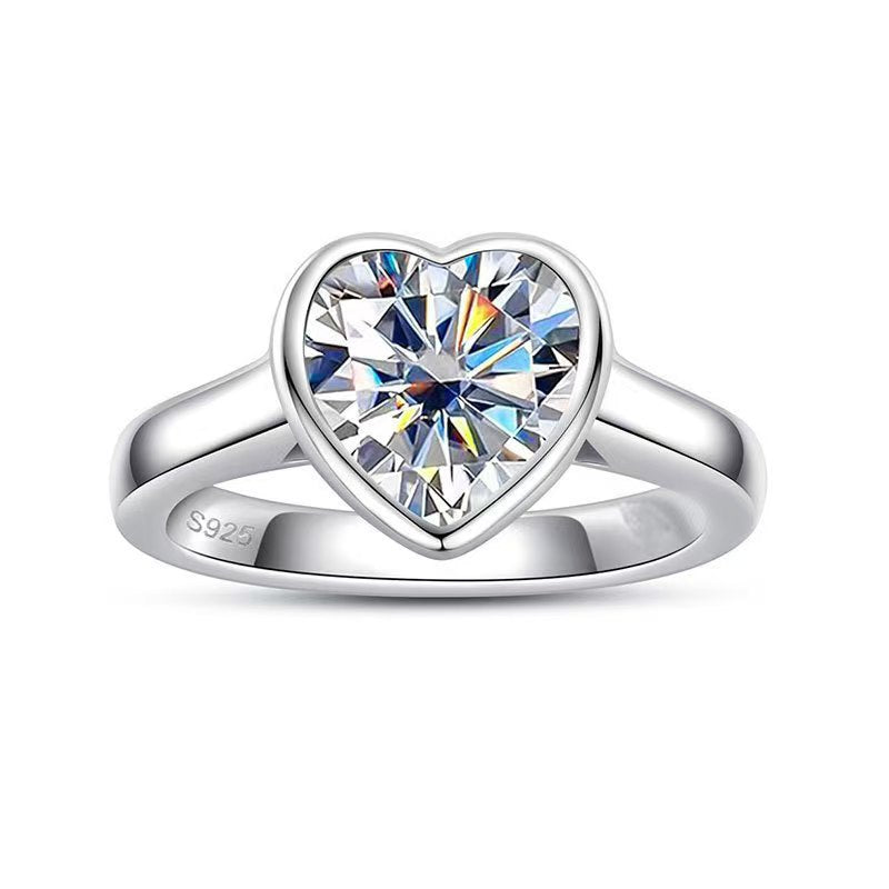 S925 pure silver moissanite heart ring egg shaped 2-carat high-end minimalist ring fashion jewelry