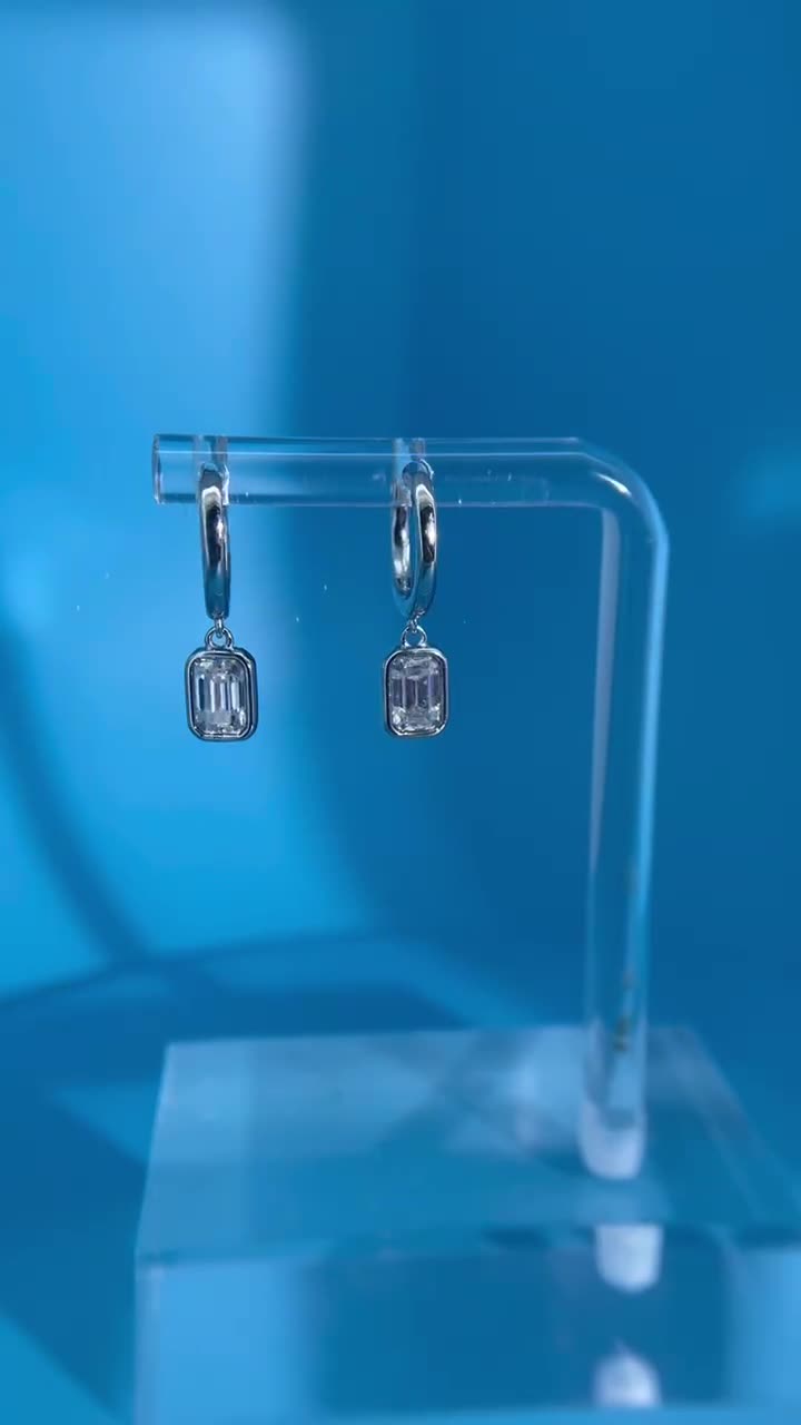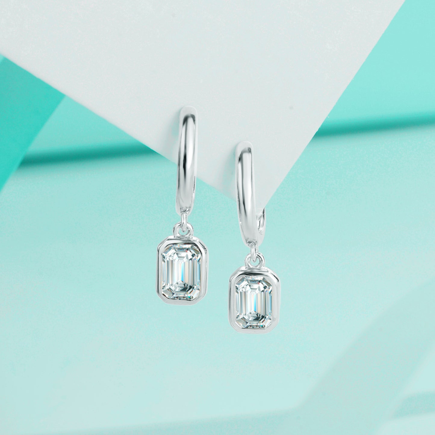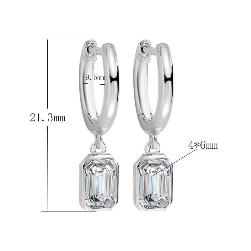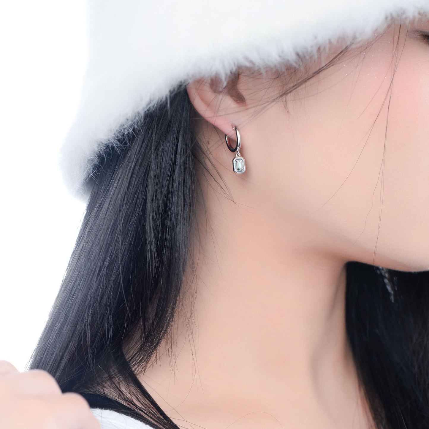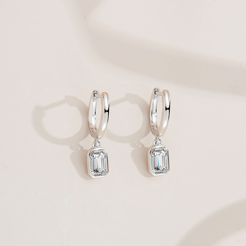 Emerald Cherokee Stone Earrings Women's Earrings S925 Pure Silver Trendy Light Luxury Rectangular Earhooks Earrings Buckles