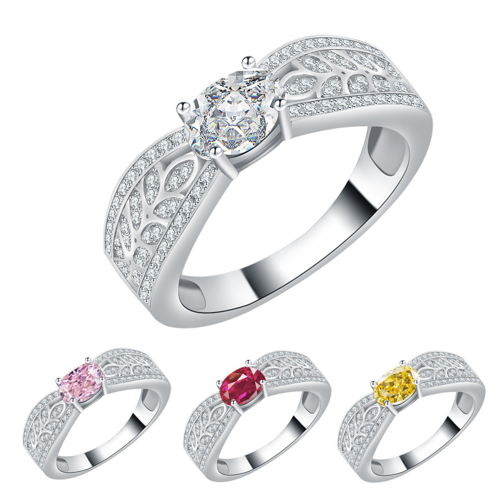 S925 sterling silver moissanite colored diamond ring with fashionable temperament and versatile hand decoration full diamond ring